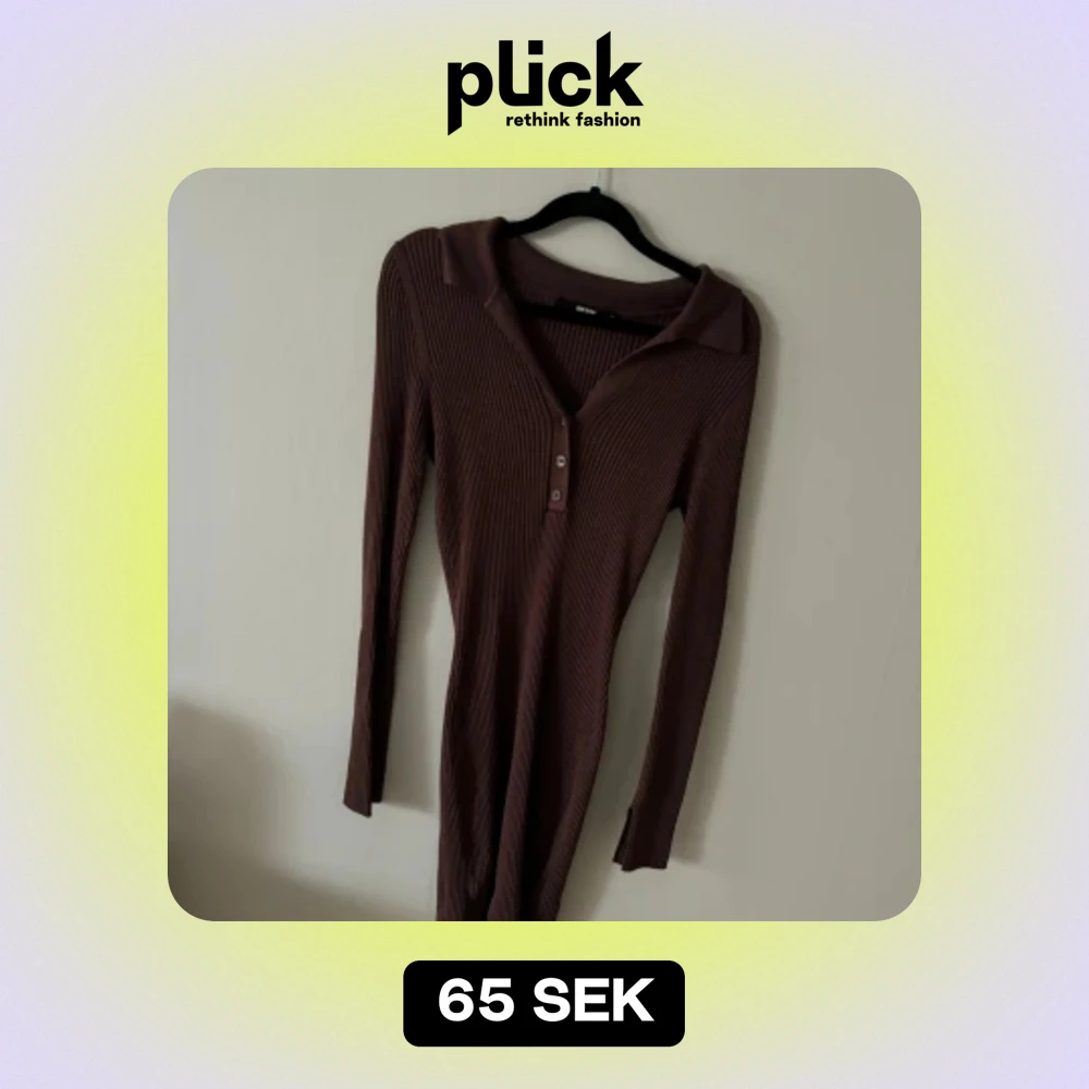 Säljer en snygg brun ribbad klänning från BikBok i storlek M. Klänningen har långa ärmar och en stilren krage med knappar framtill. Perfekt för höst och vinter, och den är superbekväm att ha på sig. Passar både till vardags och fest!