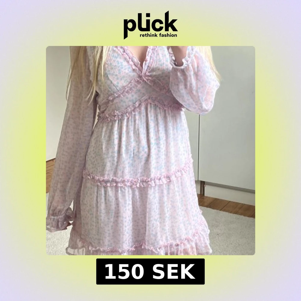 Supersöt kortklänning från bok bok pastellrosa och ljusblått blommönster. Använd 1 midsaommar och är i jätte bra skick. Strl s