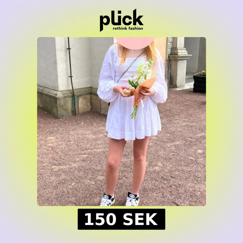 Superfin vit klänning med smockad överdel och volang i kjolen. Perfekt till student, konfirmation eller midsommar! Bara använd 2 gånger och inga defekter 💗
