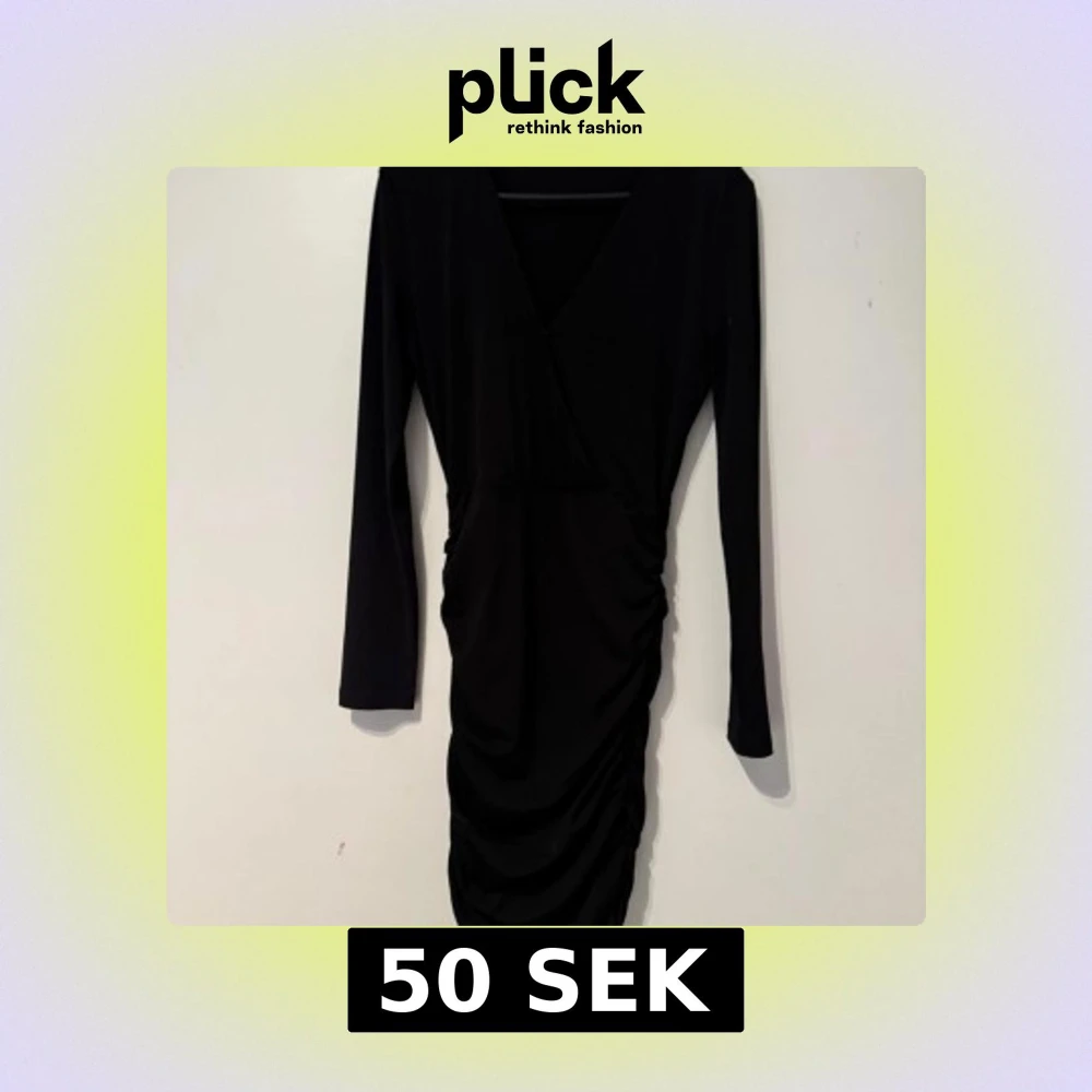 Klänning från bikbok, använd 1 gång. Klänningen har V ringning, långa ärmar och schrunch längst sidorna på kjolen.