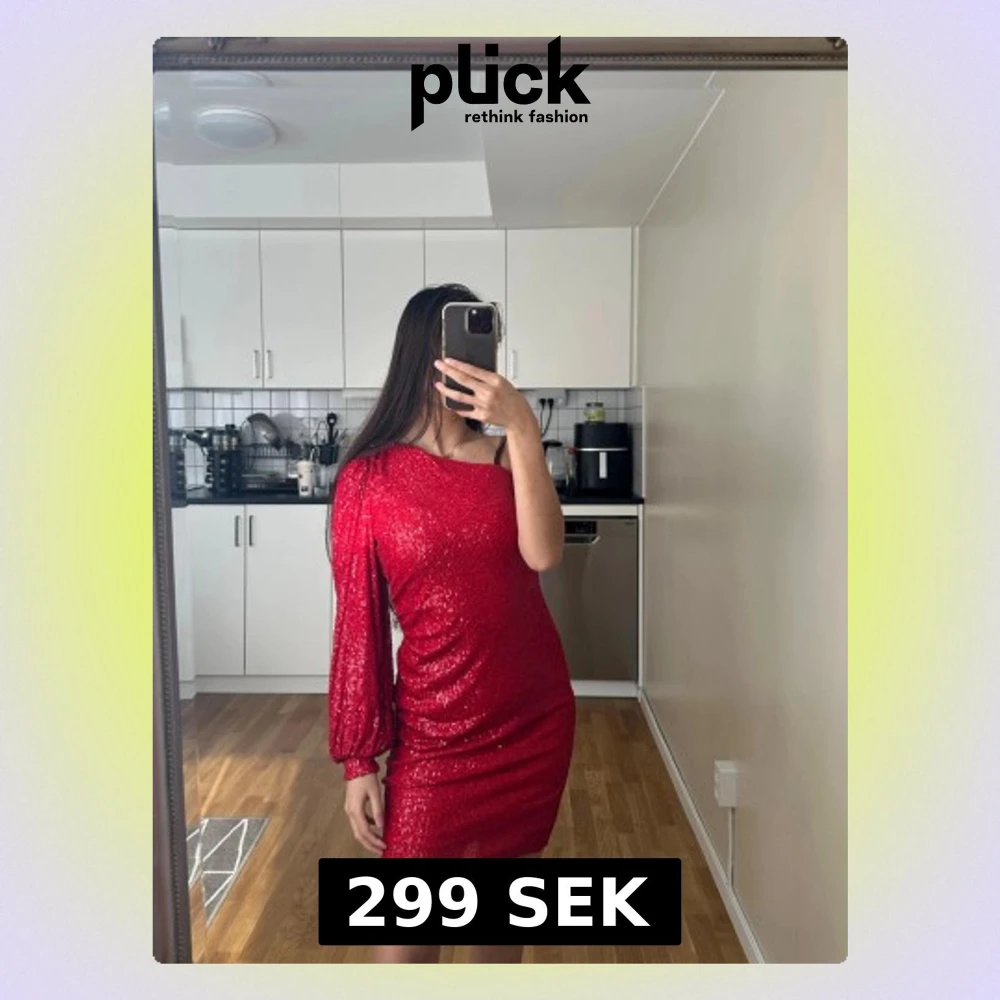 Röd glittrig one shoulder klänning