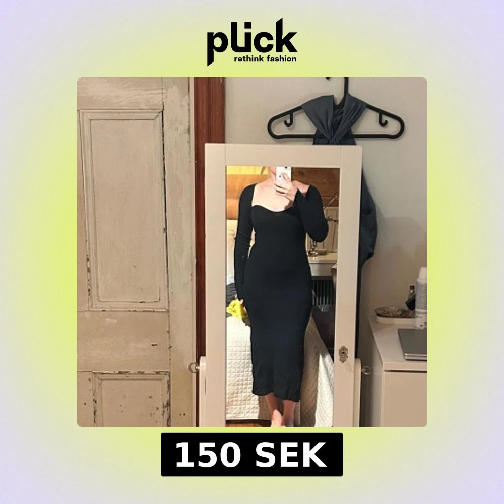 Svart långklänning från BikBok i ribbat material. Klänningen har lång ärm, figurnära passform och fyrkantig ringning. Perfekt för dig som gillar en stilren och enkel look med en touch av edge. Nyköpt för något år sedan och endast använd en gång💖