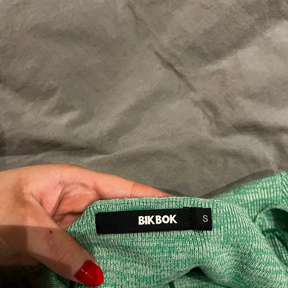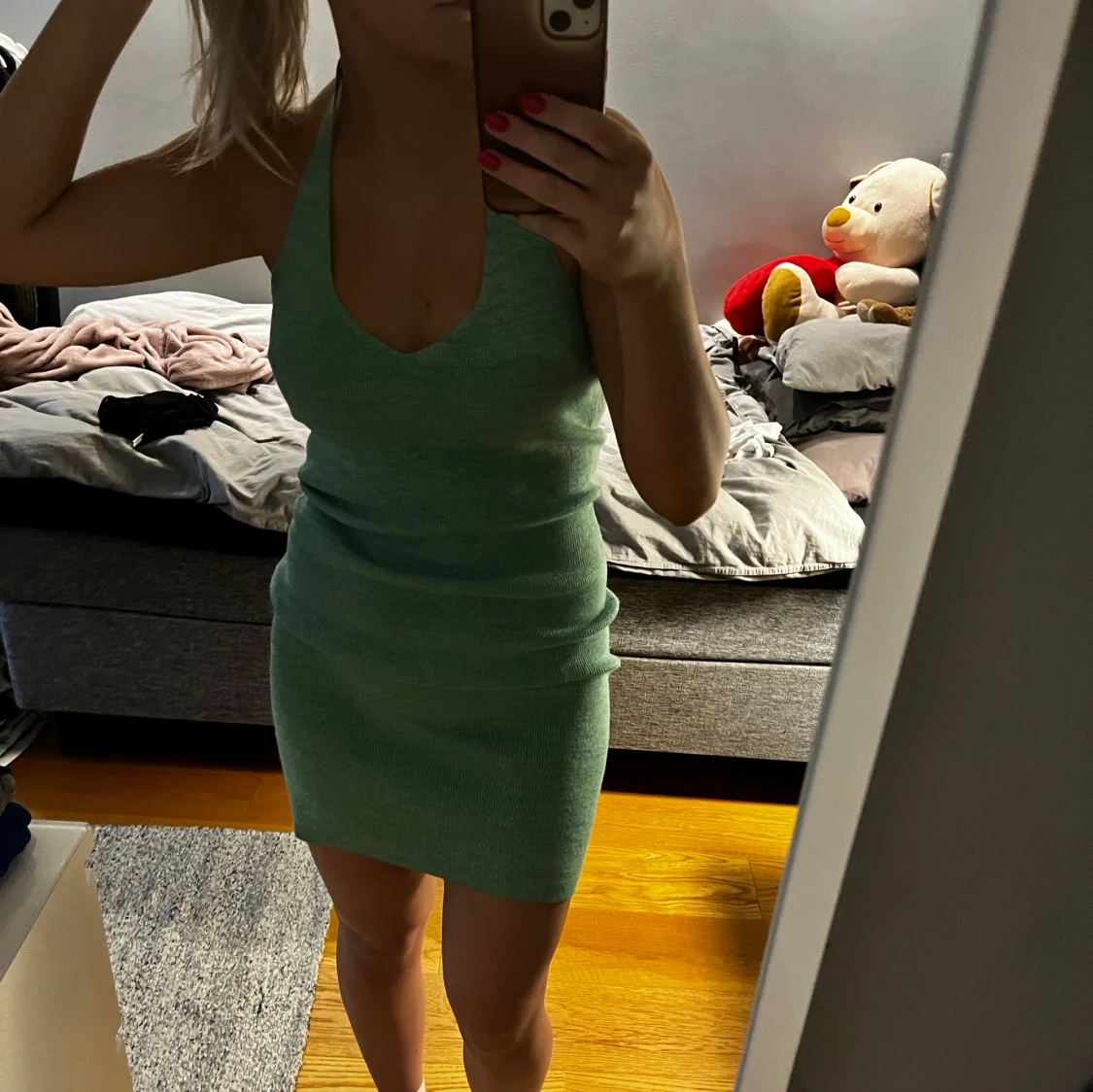 Säljer en superfin grön ribbad klänning från Bik Bok i storlek S. Den är mycket stretchig och har en snygg halterneck-design som knyts i nacken. Klänningen är i mycket bra skick! 💚