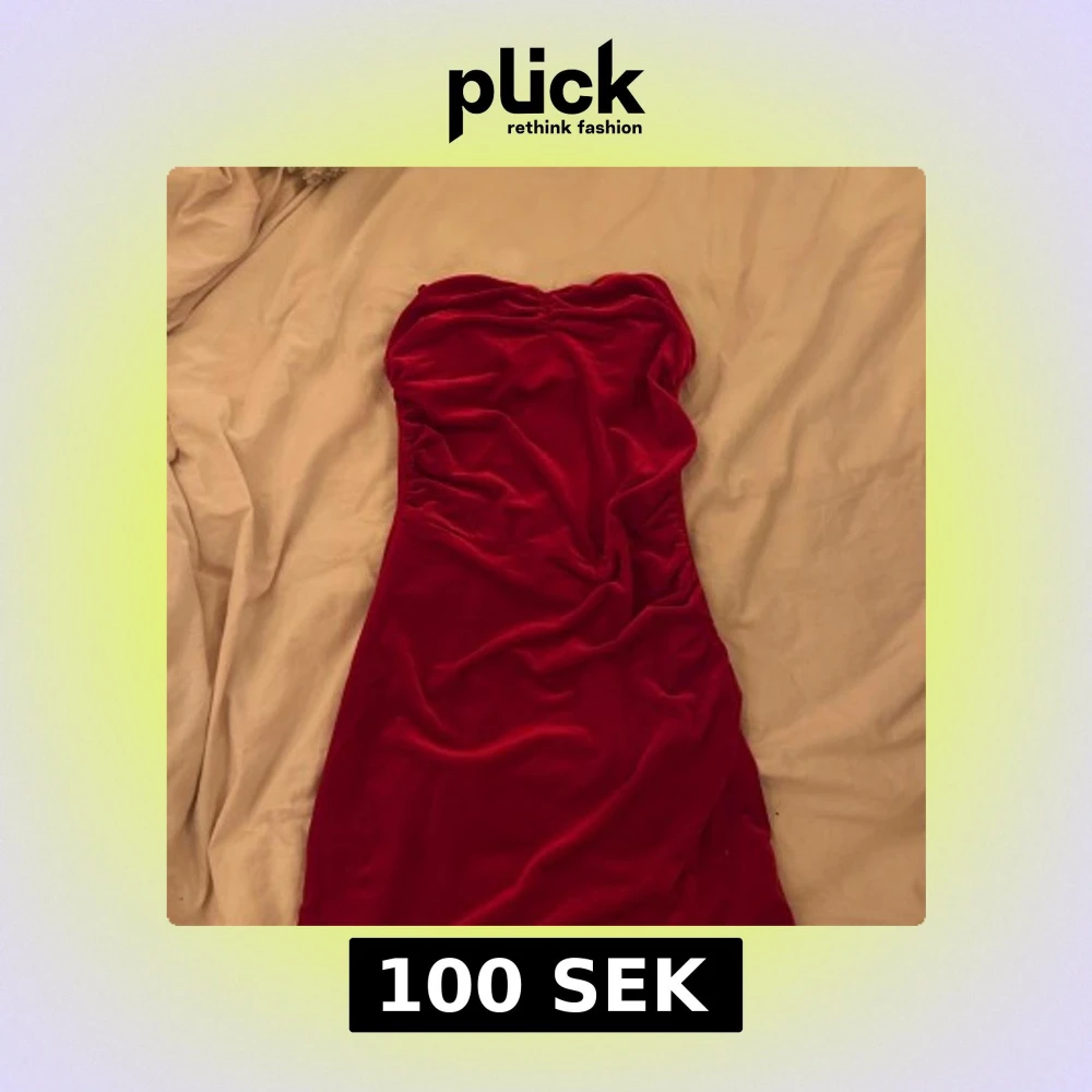 Röd klänning som har ”scrunch”, perfekt till julafton. Man kan välja att ha den med axelband eller utan band. Aldrig använd, från bikbok