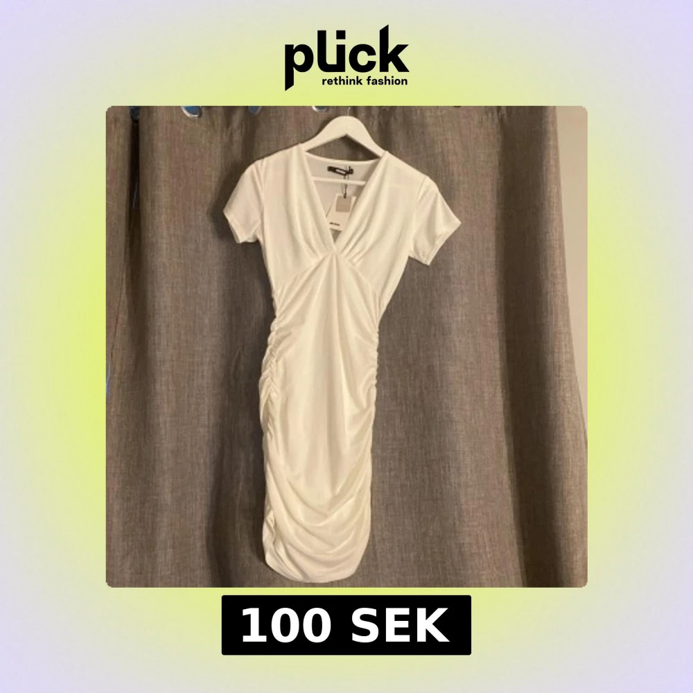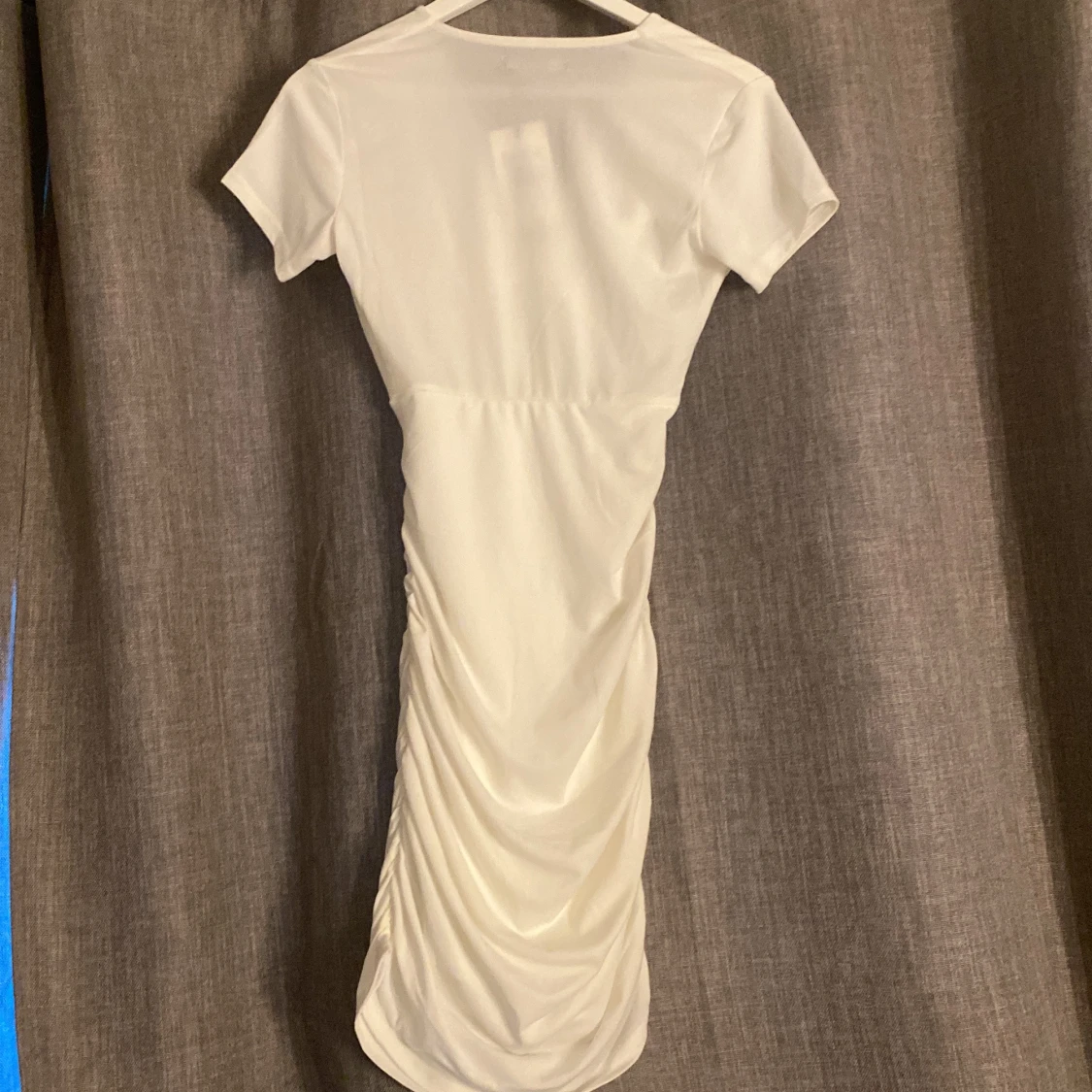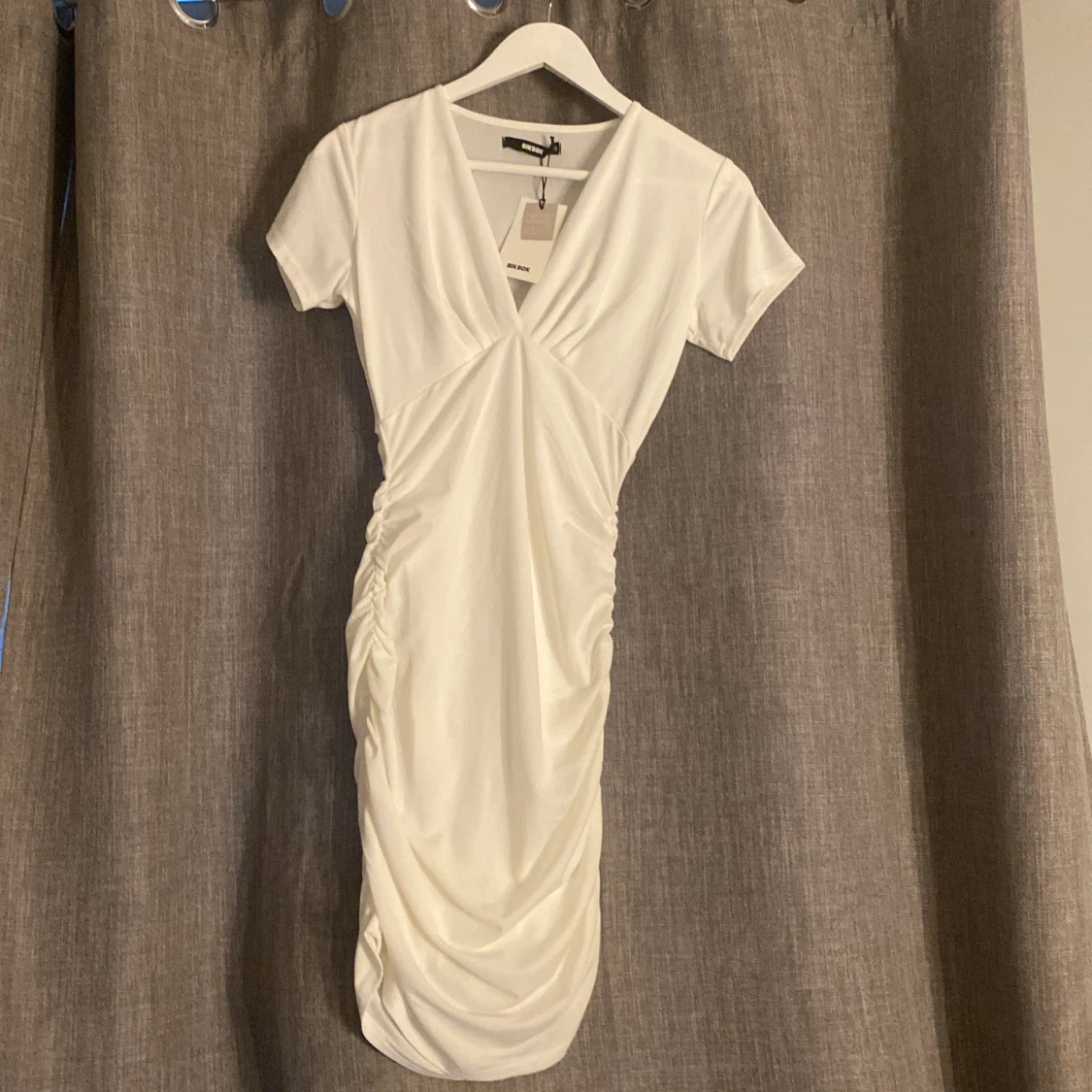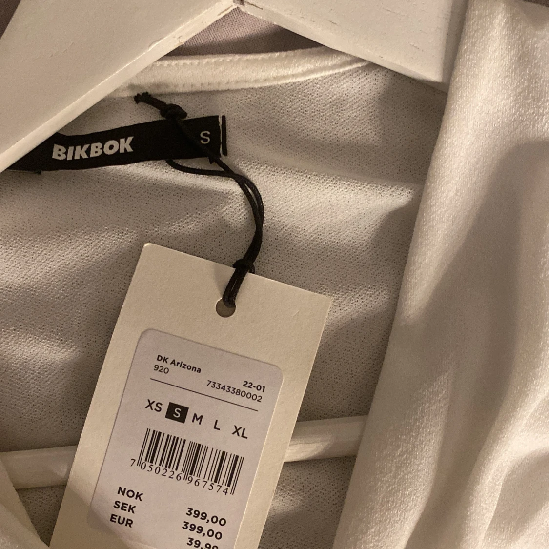 En helt ny vit klänning från Bikbok. Prislappen finns kvar så den är aldrig använd. Kortärmad med scrunch på båda sidorna av klänningen så den är stretchig.