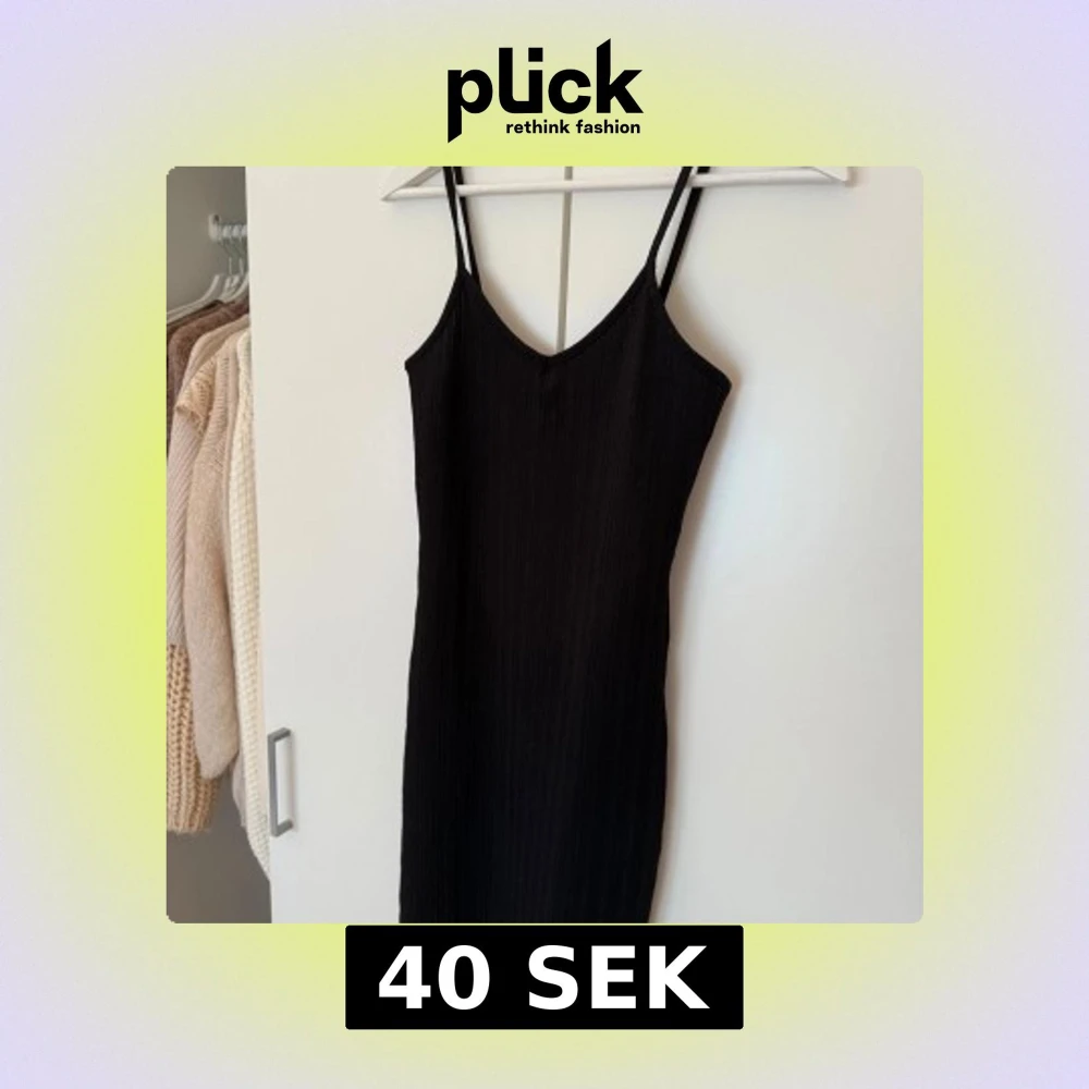 Snygg svart ribbad klänning med smala axelband och v-ringning. Perfekt för en stilren look.