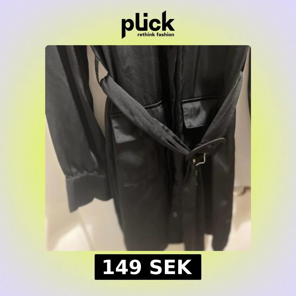 Snygg svart skjortklänning från Bik Bok i satinliknande polyester. Klänningen har långa ärmar med manschett, fyra stora fickor framtill, knappar hela vägen och ett matchande bälte i midjan. Perfekt för dig som gillar utility-vibe och stilrena detaljer. Storlek Xs men är mer som en S.