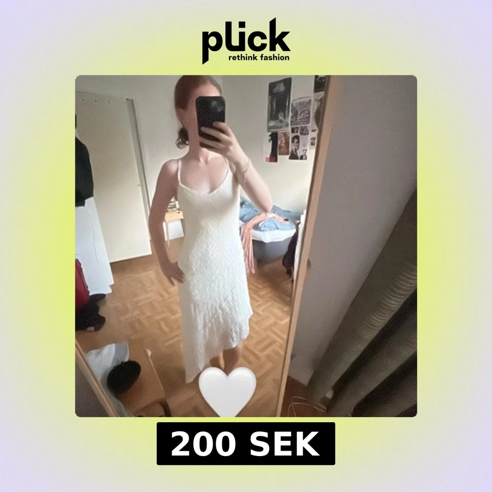 Säljer en söt vit klänning med smala axelband och v-ringning. Klänningen har spetsdetaljer och är i en lätt, luftig modell som slutar strax under knäet. Perfekt för sommarens alla tillfällen! Köpt på bikbok och är bara använd en gång!!