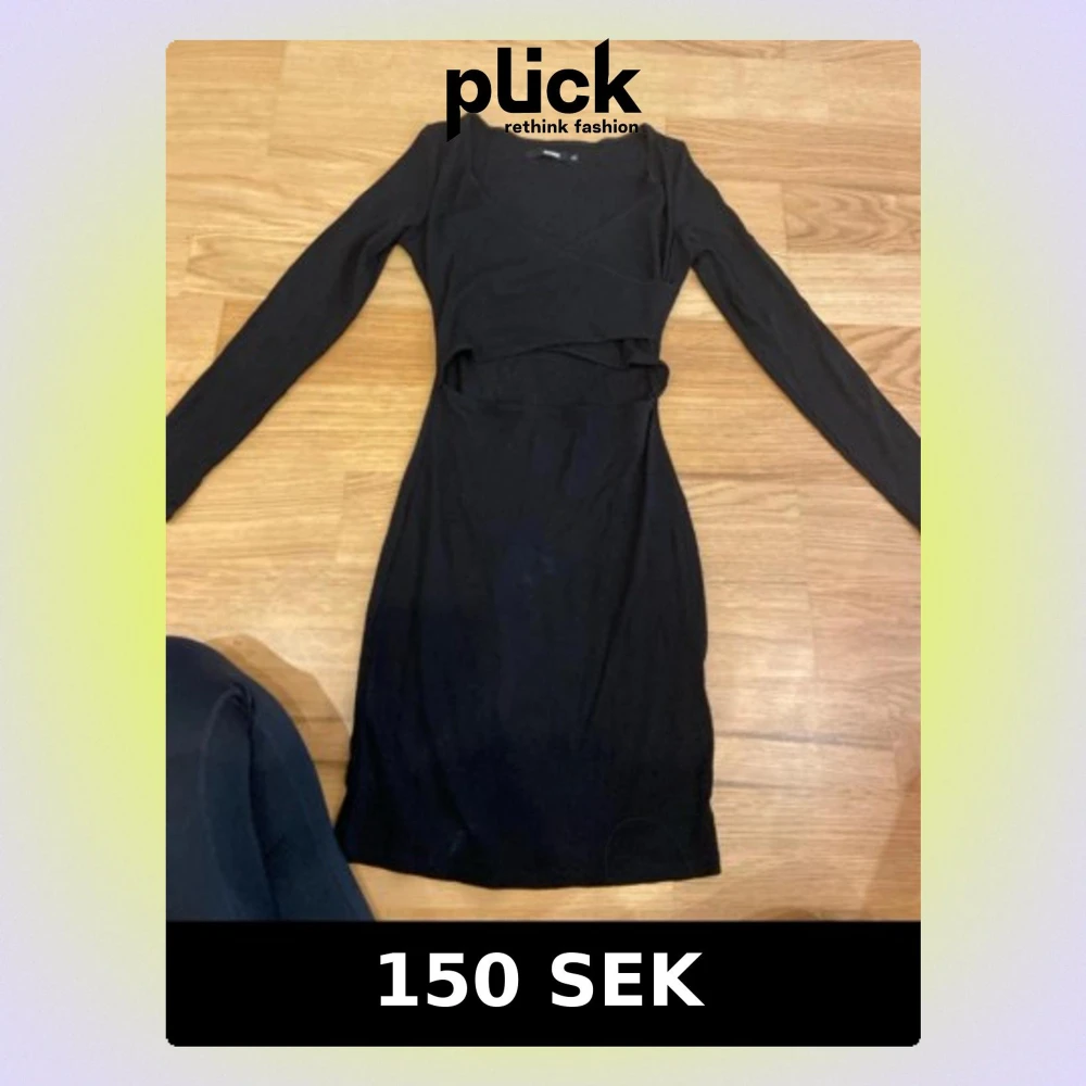 Säljer en svart ribbad kortklänning från Bik Bok i storlek XS. Klänningen har lång ärm, v-ringning och en snygg cut out-detalj i midjan som ger en trendig look. Perfekt för dig som gillar stilrena och moderna plagg.