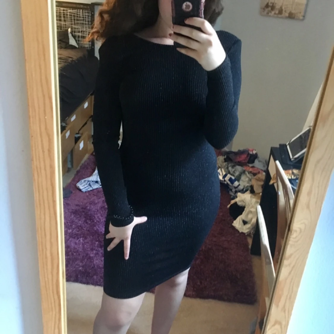 En jätte snygg svart och glittrig festklänning från Bikbok Helt oanvänd Urringning där bak och har vadd i axlarna som man kan ta bort om man vill