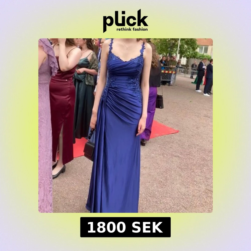 Jättefin marinblå balklänning endast använd en gång. Den är skräddarsydd så att den inte släpar i marken (jag är 180). Går att förhandla pris. Kemtvättad!