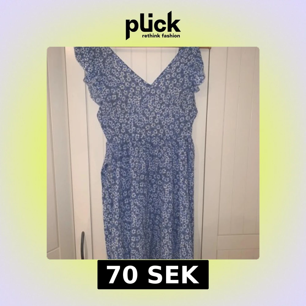 Luftig sommarklänning med blåvitt blommönster. Den knyts baktill med band, så den passar flera olika storlekar. Saknar lapp men kommer förmodligen från HM eller liknande