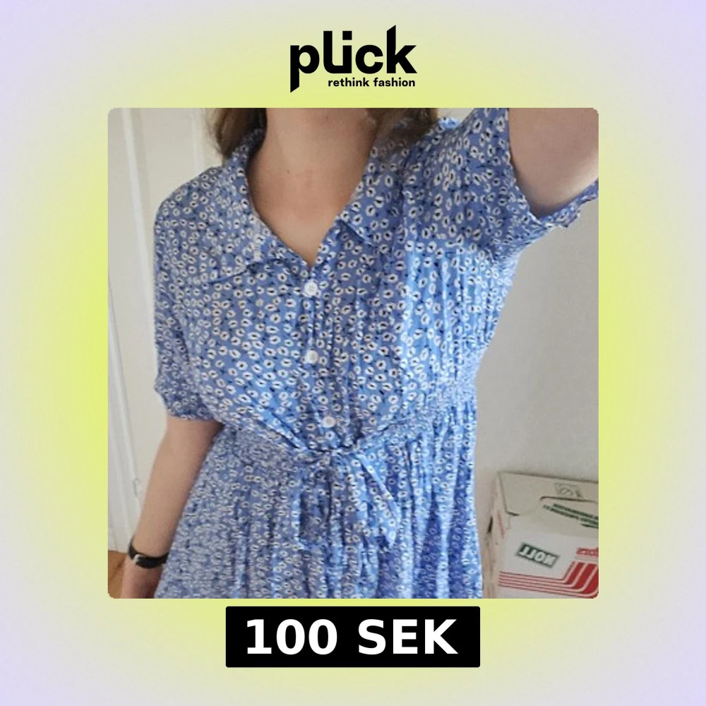 Blå klänning med blommigt mönster och band som går att knyta i midjan som framhäver midjan. Den har korta ärmar och knappar framtill, perfekt för en sommaren💙 Inte min stil så säljer, vid intresse är det bara att skriva😊💕