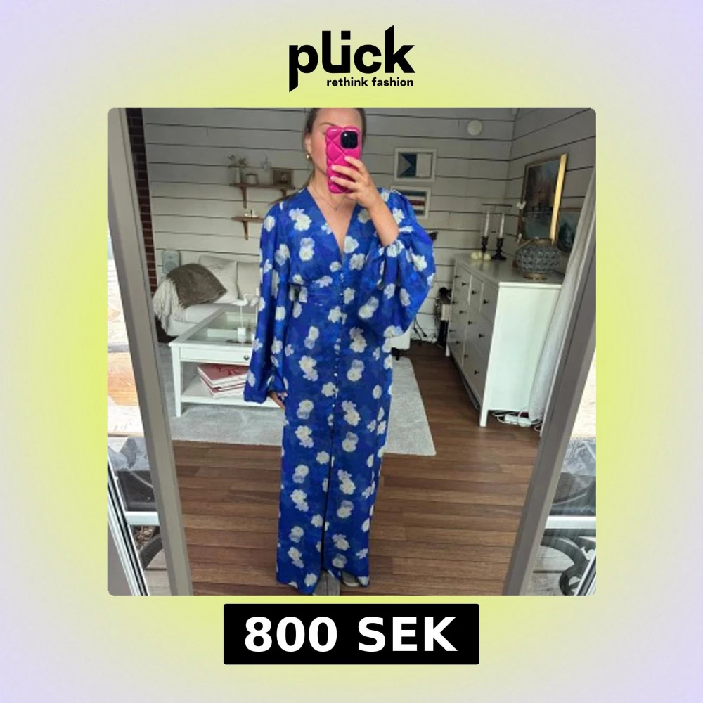 Säljer en vacker blå långklänning med vita blommor i den populära postitano-modellen från Adoore. Klänningen har långa, vida ärmar och en v-ringad design med knappar framtill. Perfekt för sommarens festligheter! Den saknar en knapp längst ner och har fått små revor i tyget men inget som påverkar utseendet, se bilder!