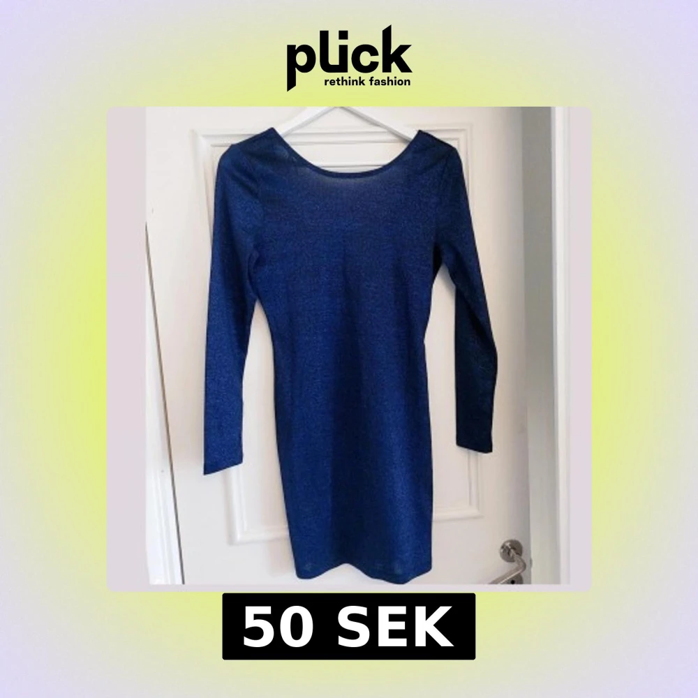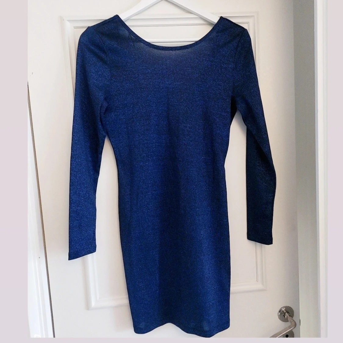Snygg blå glittrig klänning med långärmad design. Perfekt för en kväll ute med vänner. Den har en figurnära passform som framhäver silhuetten.