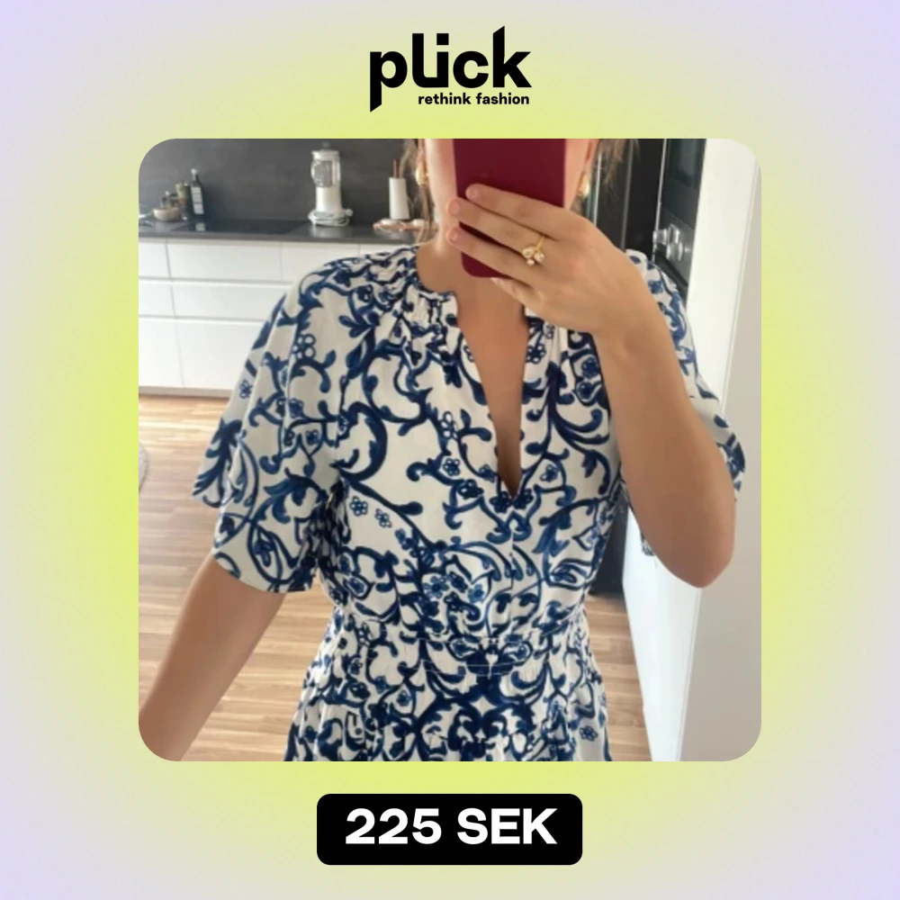 Säljer en superfin vit och blå kortklänning med ett blommigt mönster. Klänningen har korta ärmar och en v-ringad hals. Den är perfekt för sommar och vår, och passar bra till både fest och vardag. Materialet känns lätt och bekvämt, och klänningen har en normal passform. Perfekt för att känna sig både snygg och bekväm!