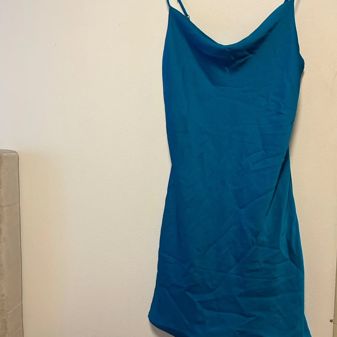 Jag säljer min blåa kläning från Gina för den aldrig kom till användning. Köpte den för ca 3 år sen och aldrig använt men har inte prislapp dock. Den kort på mig som är 174cm. Den har inga slitningar alls, den är som ny. Köpte den för 500kr