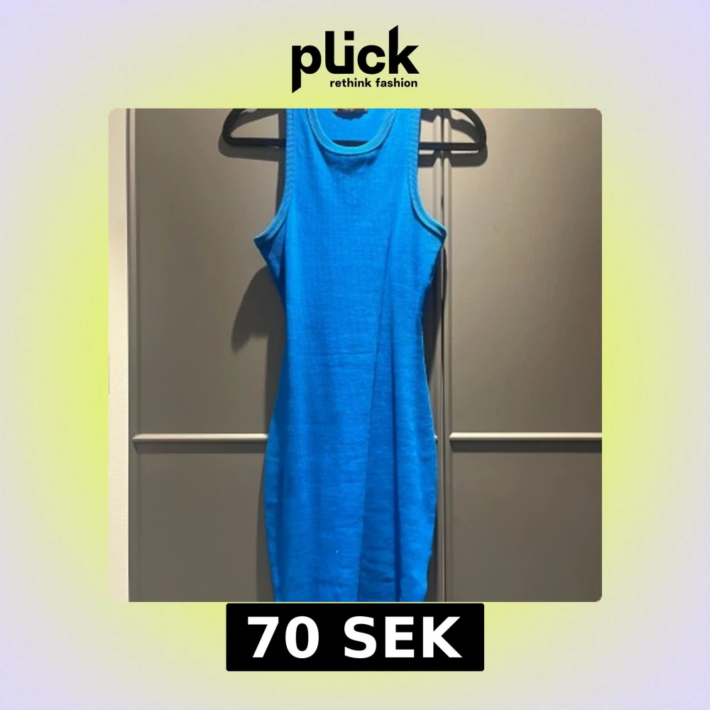 Snygg blå ribbad klänning i storlek M men passar S och XS. Modellen är ärmlös med rund hals och har en tight passform som framhäver figuren. Materialet är mjukt och stretchigt, perfekt för dig som gillar enkel och stilren design. Använd få gånger.