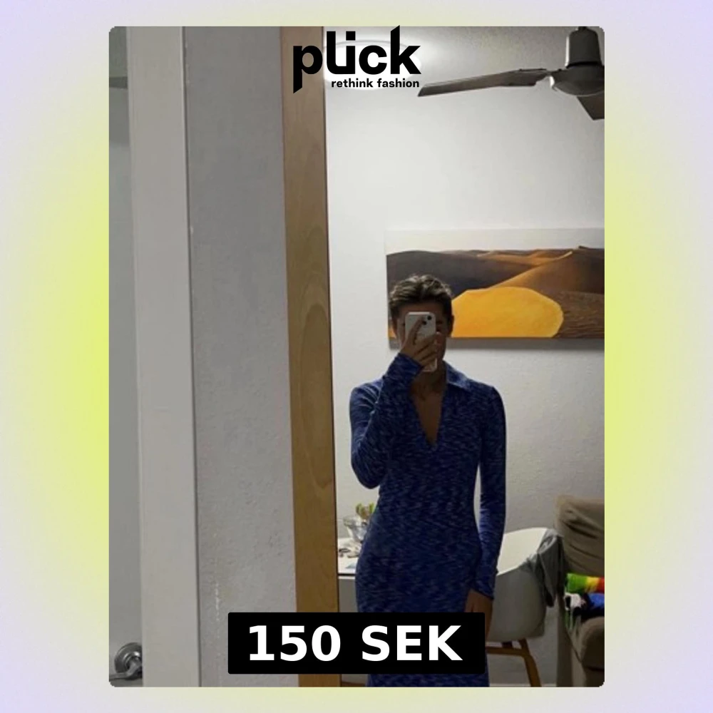 Superfin blå klänning från Gina. Den går till knäna på mig som är 176. Sitter super bra längst kroppen. Endast använd 2 gånger