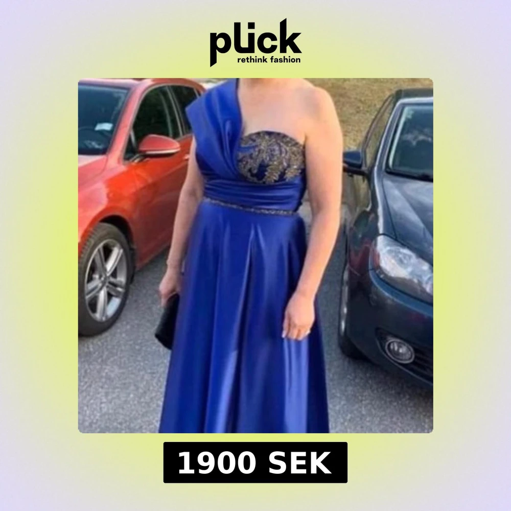 Säljer min eleganta blå satinklänning med pärlor i storlek 42. Ordinarie pris 4500kr, säljer för 1900kr. Använd bara en gång och vid intresse kan fler bilder skickas. Perfekt för en speciell kväll som till balen eller ett bröllop!