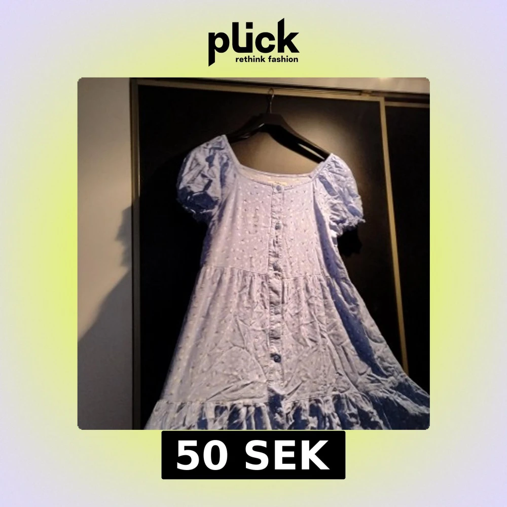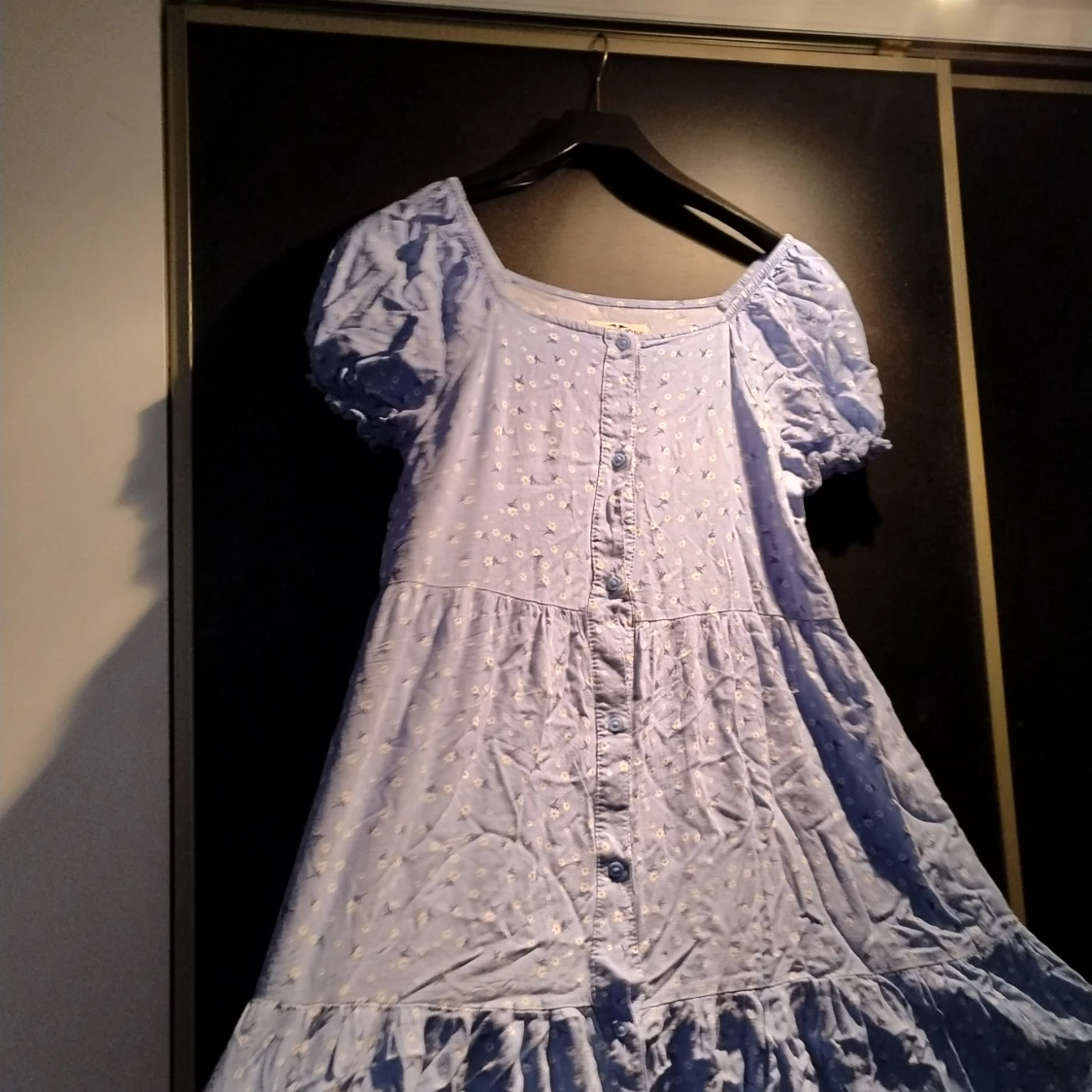 Charmig ljusblå klänning från Hampton Republic med små blommor och knappar framtill. Den har korta puffärmar och en luftig passform, perfekt för varma dagar.