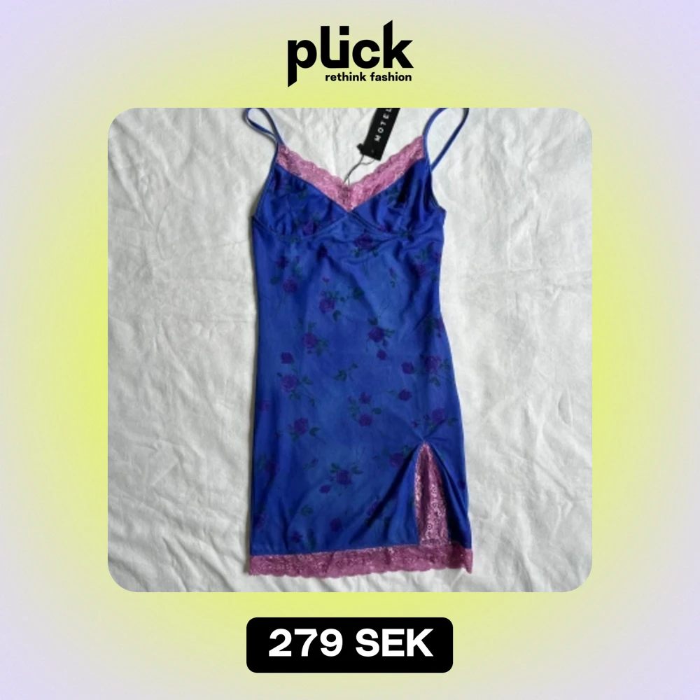 helt ny klänning från Motel Rocks med blommigt mönster och rosa spetsdetaljer. Klänningen har smala axelband och en slits med rosa spetskant.