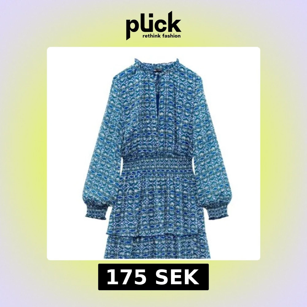 Supersnygg blå klänning med lång ärm och blommigt mönster. Har volangdetaljer. Köpt på zara. Knappt använd då den är för stor🩵
