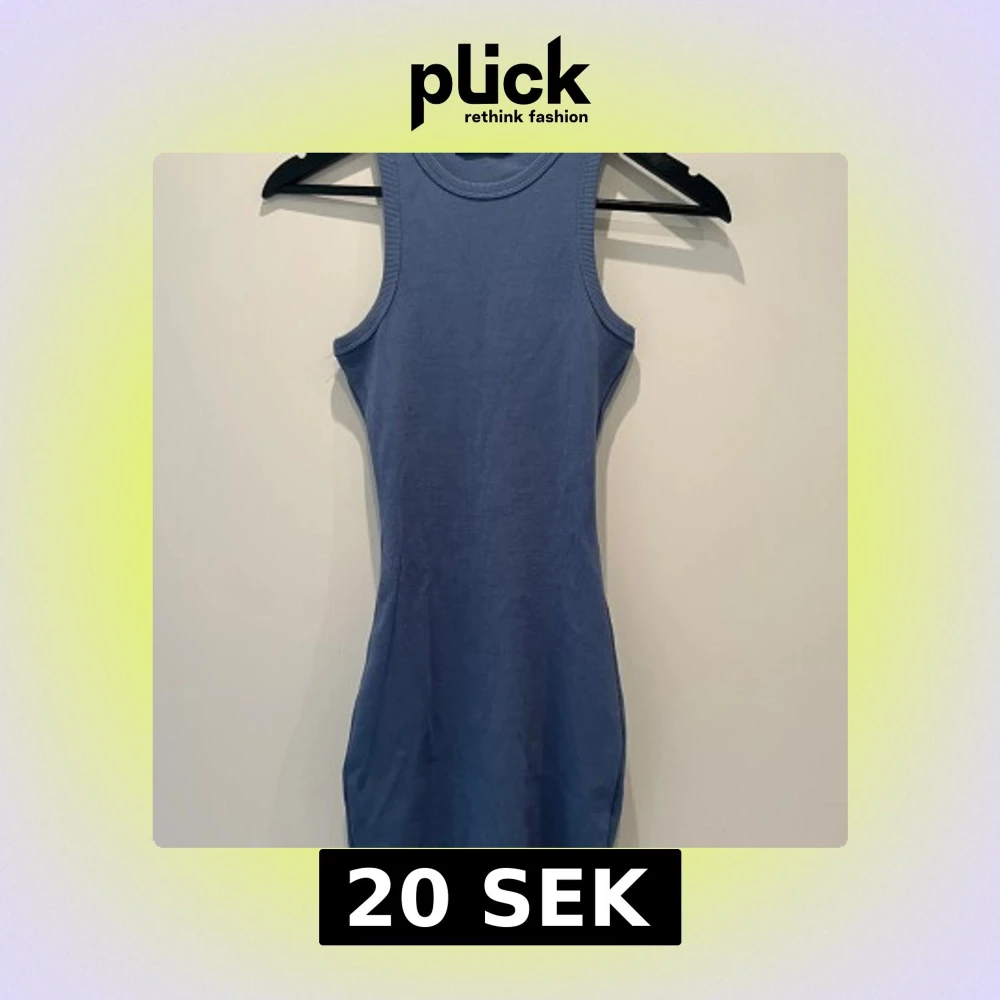Säljer en blå, ribbad kortklänning från FB Sister i storlek S. Klänningen är ärmlös med rund halsringning och har en tight passform .