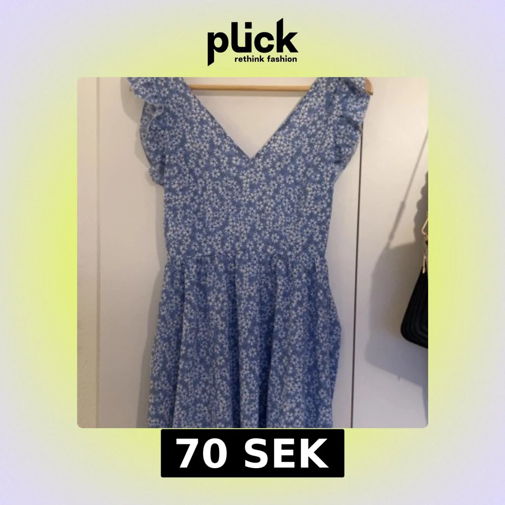 Blå blommig kortklänning med volang