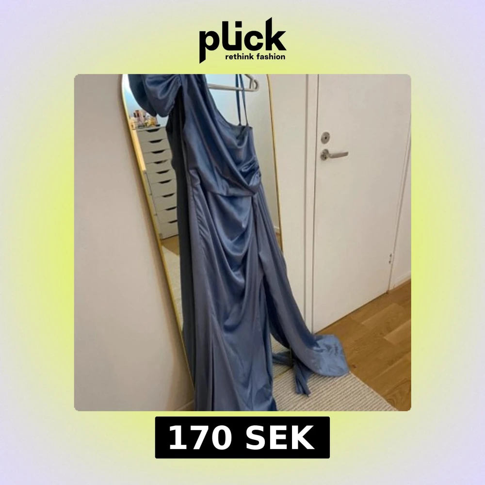Elegant blå långklänning med draperad design och one shoulder. Perfekt för speciella tillfällen som tex bal eller bröllop med sin flytande siluett och mjuka material. Har använt den en gång