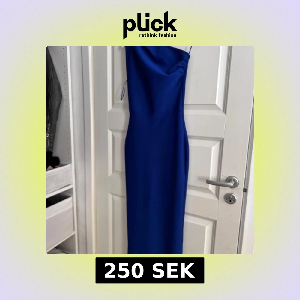 Elegant blå långklänning med en stilren oneshoulder-design. Klänningen har en smickrande passform och en diskret dragkedja i ryggen. Perfekt för en speciell kväll!
