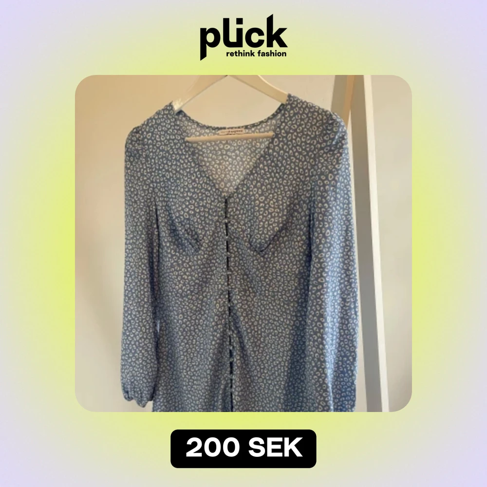 Superfin blå leopardmönstrad klänning från Nelly. Aldrig använd. Knappar i mitten så att man får en fin passform.