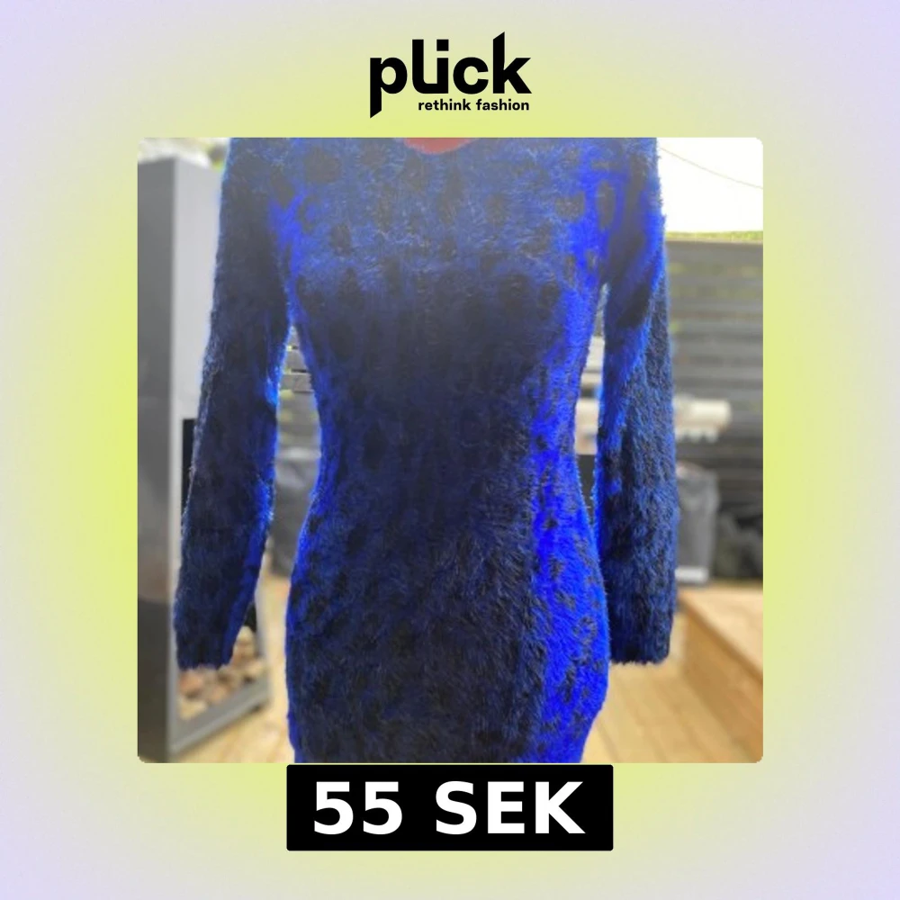 Denna iögonfallande klänning har ett djärvt blått och svart leopardmönster. Den har långa ärmar och en smickrande V-ringning, vilket gör den till ett perfekt val för en utekväll eller ett speciellt tillfälle. Längd: 75 cm, Bystvidd: 42 cm Uppskattad storlek S Mycket bra skick! Inga bilder när den sitter på mig! Katter finns i hemmet!