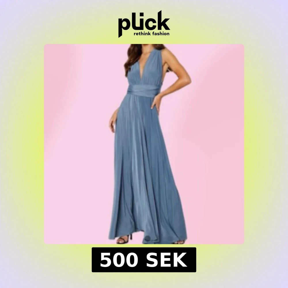 Elegant blå långklänning som kan justeras till många olika designer. Nyskick och endast använd vid ett tillfälle.