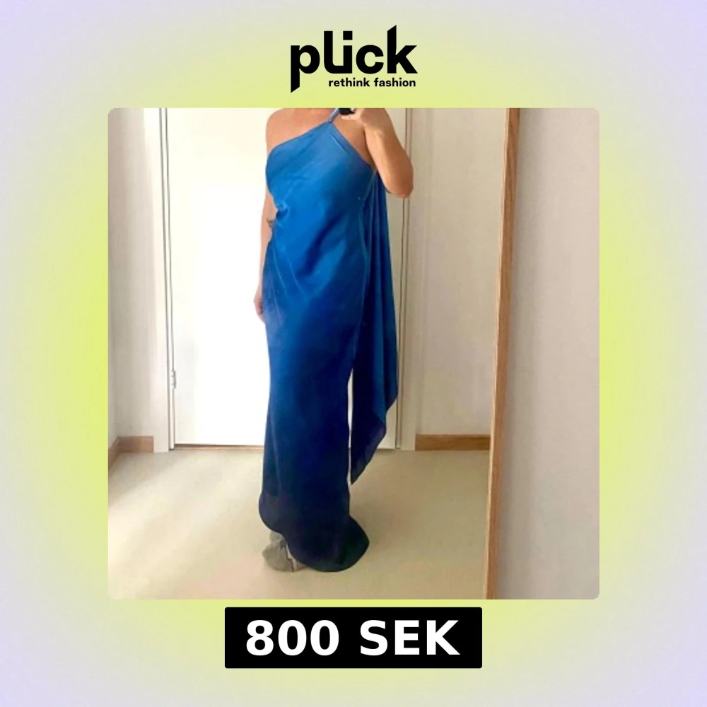Snygg blå one-shoulder klänning med ett elegant flöde och asymmetrisk design. Perfekt för en somrig fest eller bal. Klänningen har en lång längd och är tillverkad i ett lätt material som ger en vacker siluett. Bara använd en gång. Köpte för 1200🌟💫