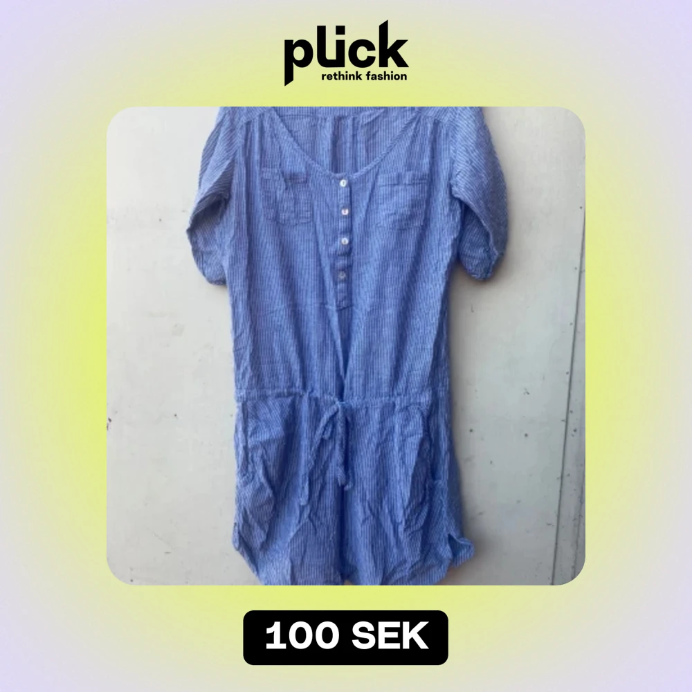 Säljer en superfin blå randig klänning från Lindex. Den har korta ärmar och knappar framtill, samt ett knytband i midjan för en snygg passform. Perfekt för en avslappnad sommarlook! 💙