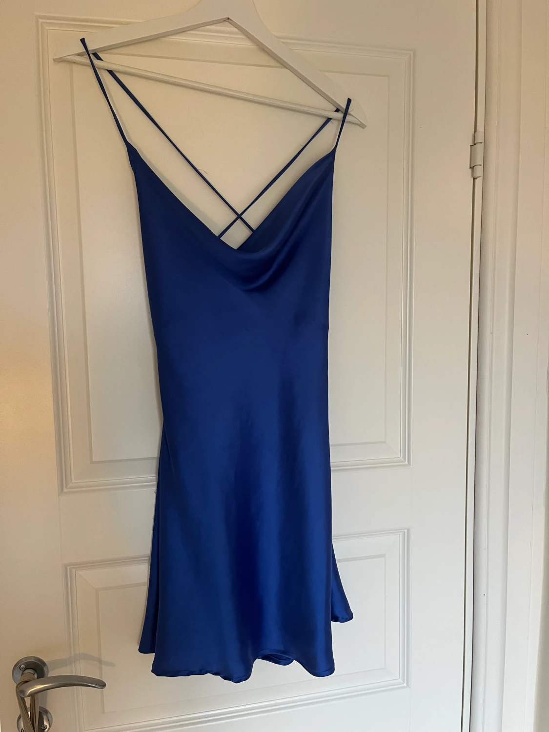 En blå satin klänning. Köpt från zara. Fint skick! Storlek S. Kommer ej till användning. Perfekt till fest! 🌸