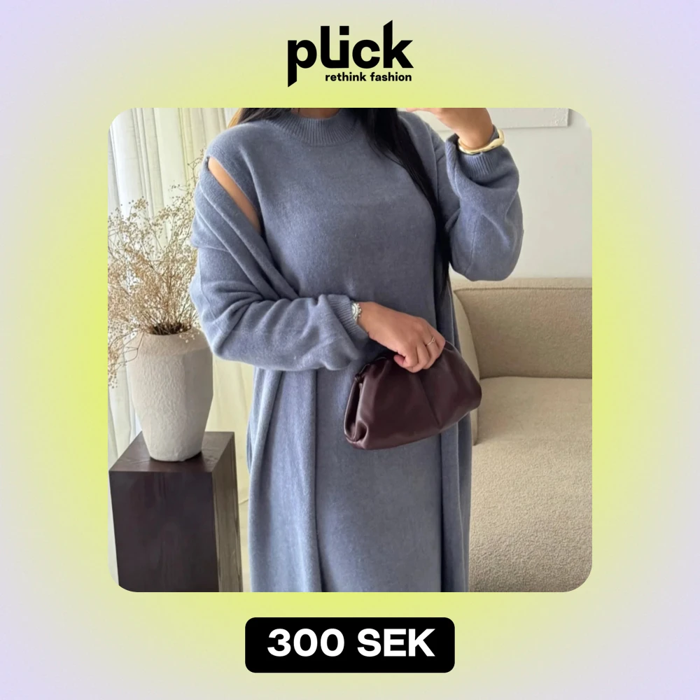 ALDRIG ANVÄND, ETTIKET KVAR!! Ett sperfint blått set, klänning och lång kofta i mjukt ullmaterial. Perfekt för höst och vinter, både mysig och stilren. Passar bra till sneakers för en avslappnad look. PRIS KAN DISKUTERAS