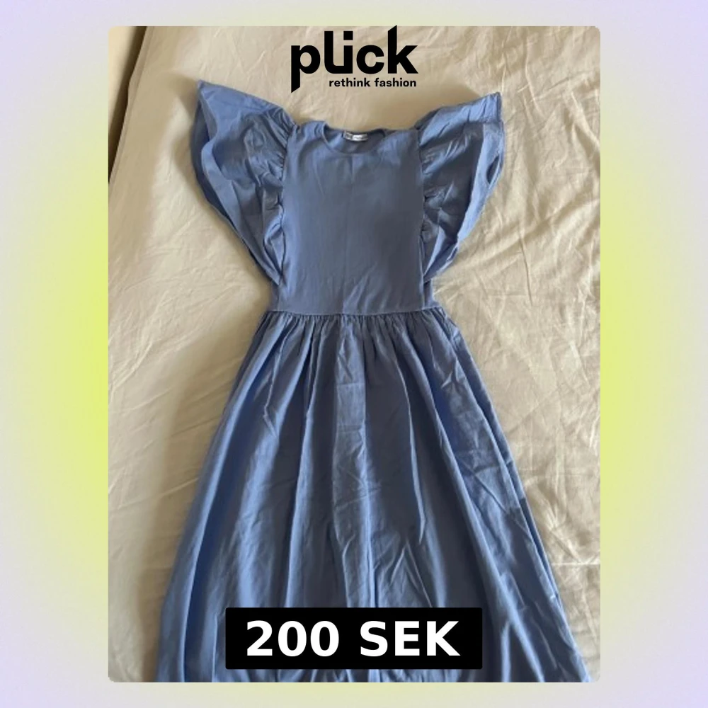 Supersöt blå långklänning från Zara med rund halsringning och stora volangärmar. Klänningen har en markerad midja och ett luftigt, rynkat kjolparti