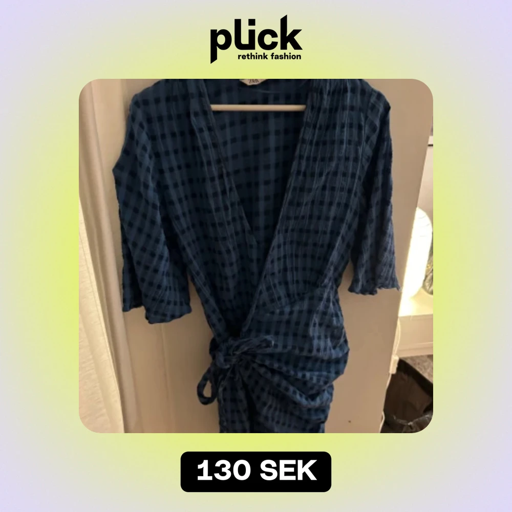 Säljer denna klänning från zara i blå rutigt mönster, storlek M