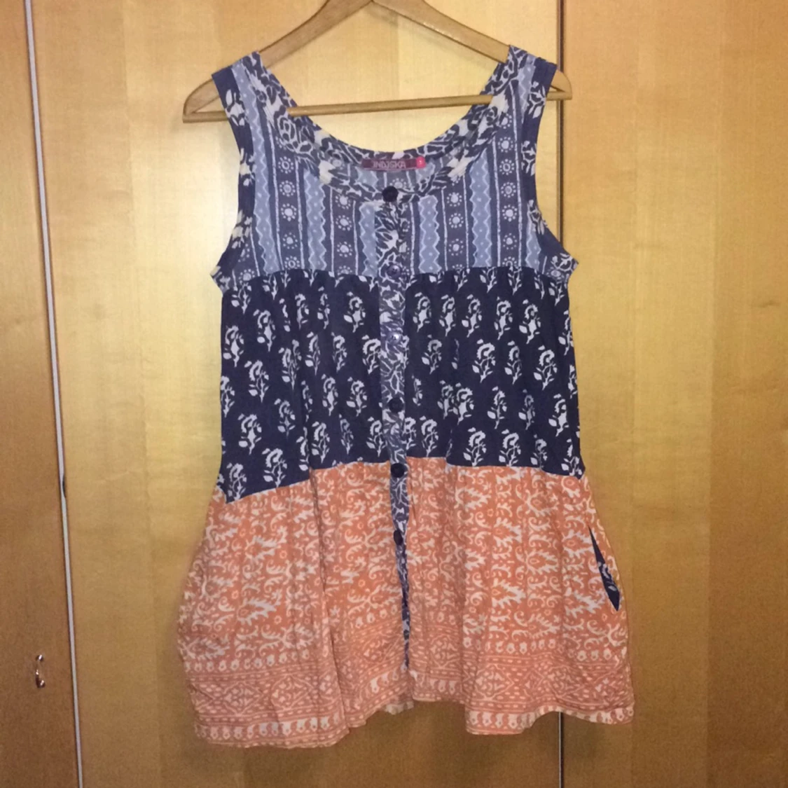 En älsklingsklänning från indiska. Storlek M. Den är rätt vid men passar också S då den veckar sig och passar t.o.m XL.