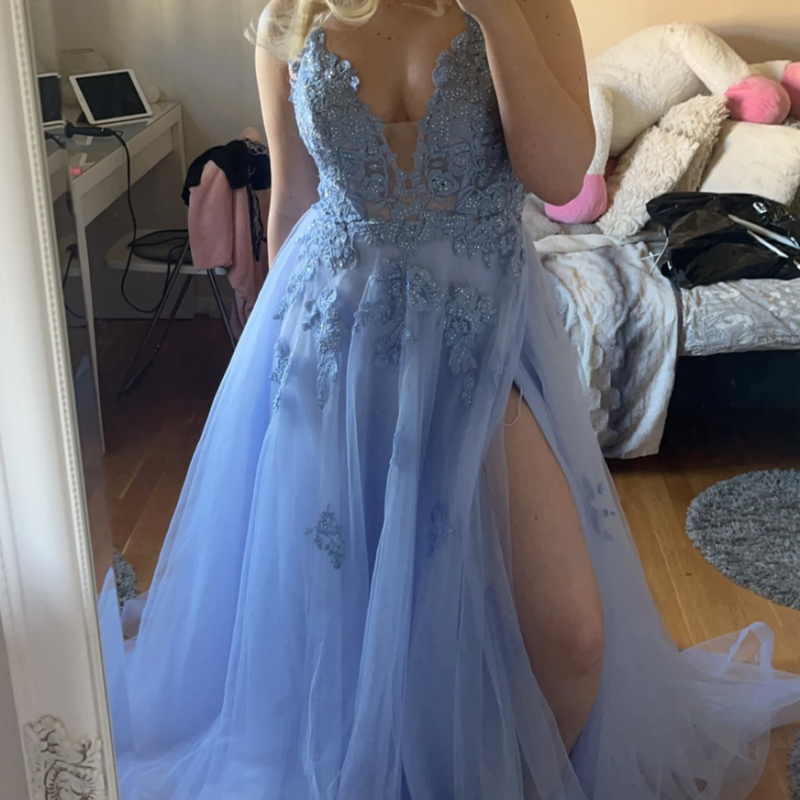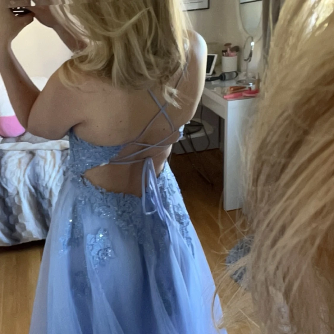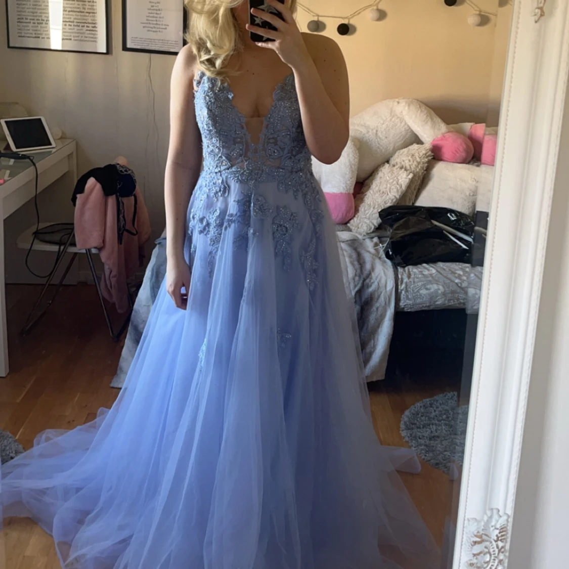 Säljer nu min helt nya, oanvända balklänning då jag har köpt en annan. Den är såå himla fin och drömmig, och alltså helt oanvänd då den är ny. Köpt för 2100, men jag säljer den för 1700+ frakt. Skriv för fler frågor/bilder, jag kan posta direkt!🩵🩵