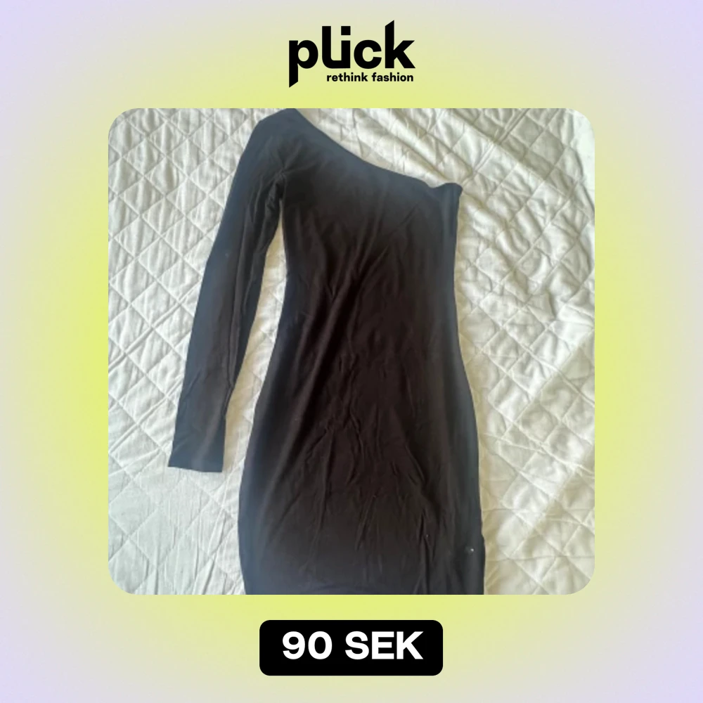 En svart klänning väldigt stressigt material, den är i storlek Xs men jag som har storlek M får på mig den!