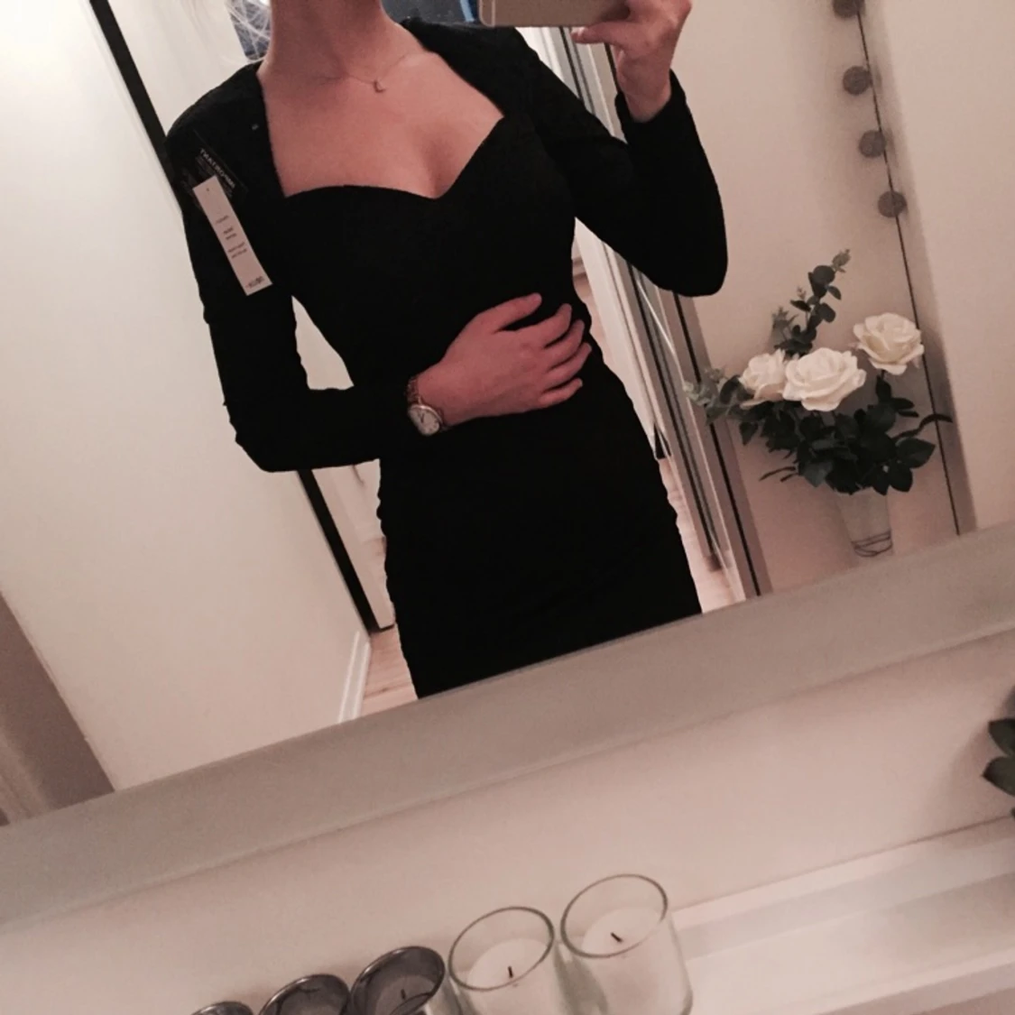 Svart spetsklänning ifrån Nelly.com med lapparna kvar. Elastiskt material. Liten i storleken så skulle säga att det är XS-S.