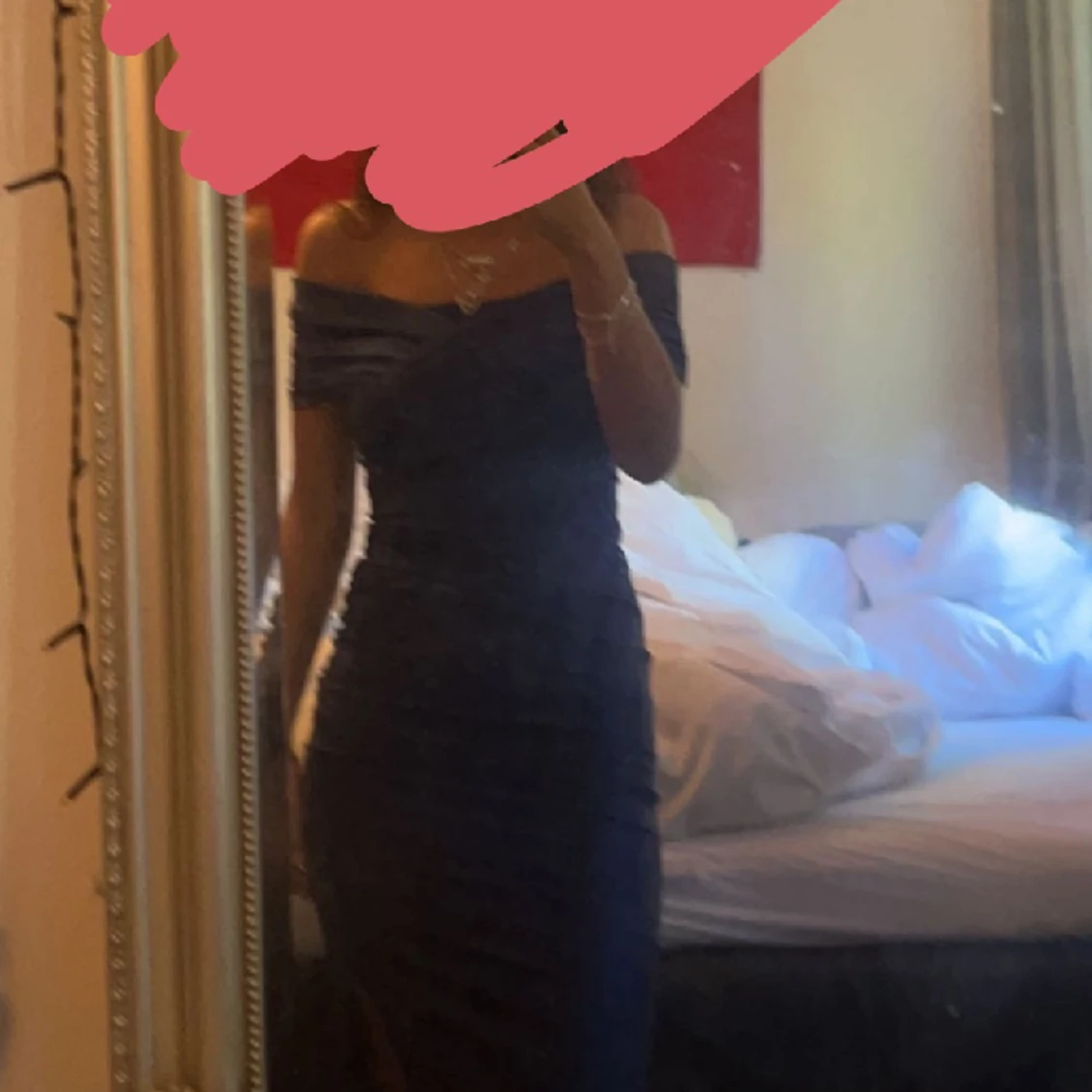 En fin mörkblå glittrig balklänning i nyskick. Storlek xs och lång på mig som är 1,60cm