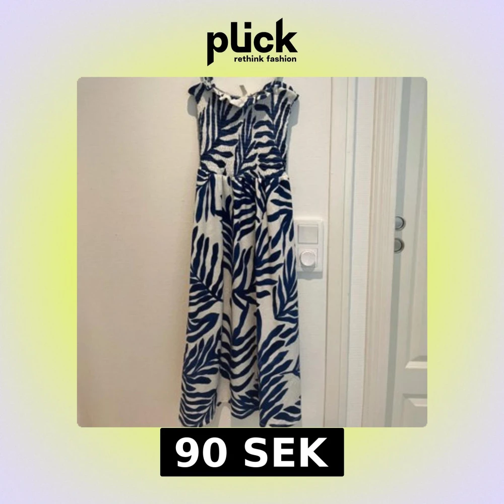 Supersnygg långklänning från H&M med blått och vitt mönster. Klänningen har smala axelband, smockad överdel och ett flowy fall. Perfekt för sommarens varma dagar och ger en fräsch vibe med sitt coola mönster. Använd fåtal gånger