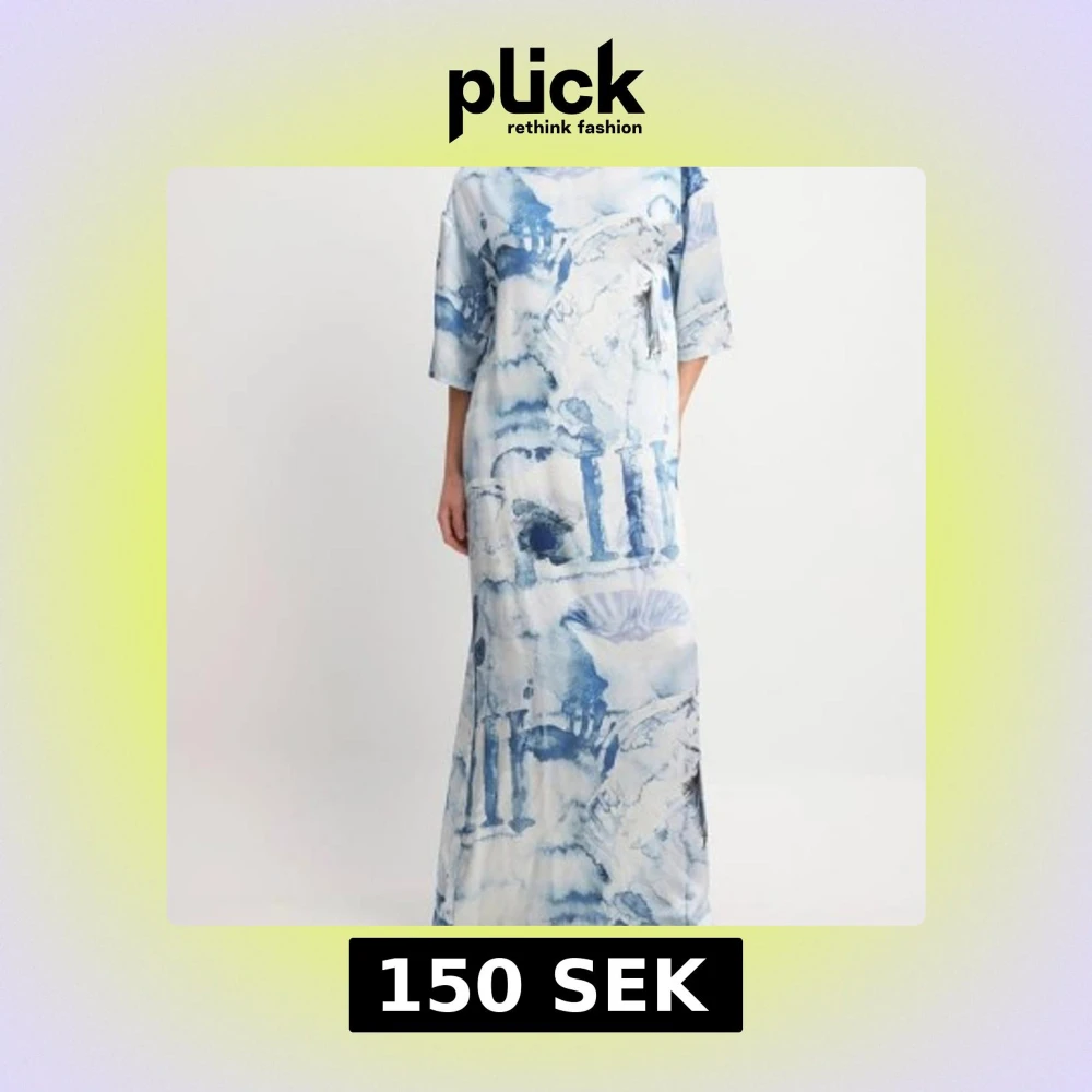 Säljer en långklänning från NA-KD med unikt blåvitt mönster som påminner om akvarell. Klänningen har lös passform, trekvartsärm och rund halsringning. Perfekt för sommarens tillfällen när du vill sticka ut med en konstnärlig look.