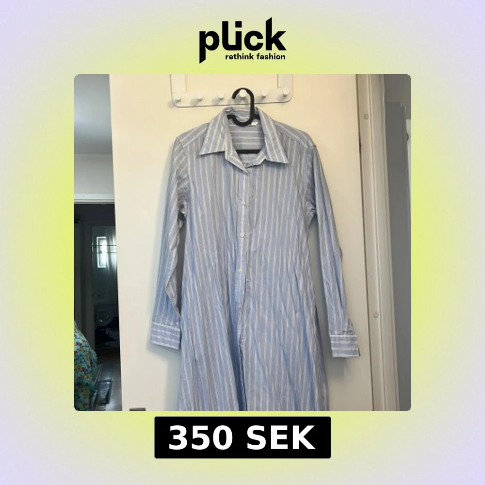 Snygg skjortklänning i blått och vitt med klassiska vertikala ränder. Långärmad modell med krage och knäppning hela vägen framtill. Tillverkad i mjuk bomull som känns skön mot huden. Perfekt för en chill och stilren look.