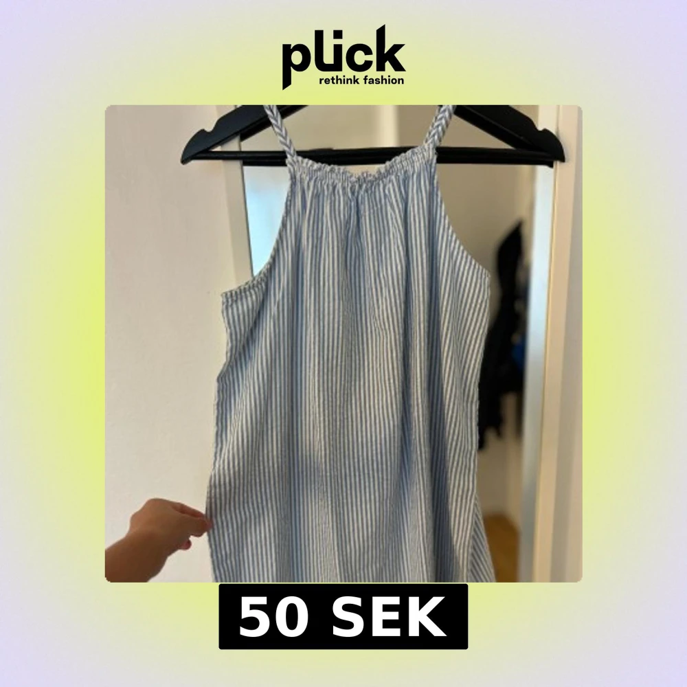 Säljer en söt blåvit randig klänning från H&M med smala axelband och avslappnad passform. Klänningen är kort och har ett luftigt tyg i bomull, perfekt för varma dagar. Pris går att diskutera🩵🤍💙