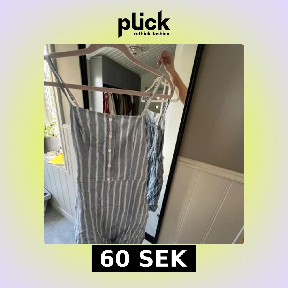 Söt blåvit kortklänning med smala axelband och knappar framtill🪻